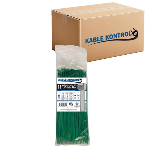 11 Inch - Color Zip Ties - Nylon - Green - 50 Lbs Strength - 8000 Pcs - Bulk Zip Ties