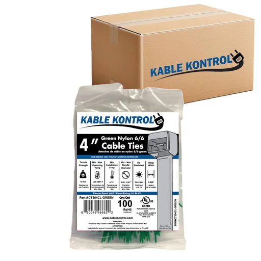 4 Inch - Color Zip Ties - Nylon - Green - 18 Lbs Strength - 40000 Pcs - Bulk Zip Ties