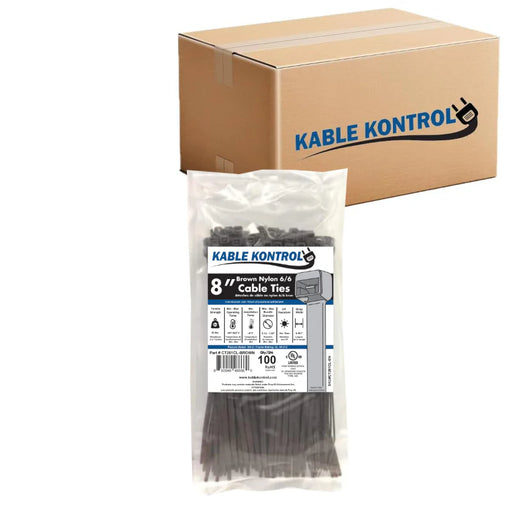 8 Inch - Color Zip Ties - Nylon - Brown - 50 Lbs Strength - 10000 Pcs - Bulk Zip Ties