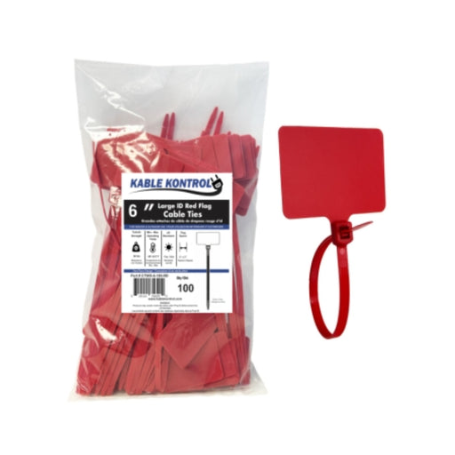 6 Inch - Write On Zip Tie Tags - (2 x 3 Inch) Flag Top - 40 Lbs Strength - 100 Pcs - Red