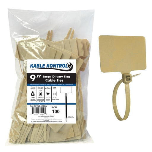 9 Inch - Write On Zip Tie Tags - (2 x 3 Inch) Flag Top - 40 Lbs Strength - 100 Pcs - Ivory