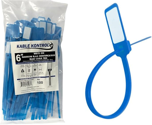 6 Inch - Write On Zip Tie Tags - (1-3/8 x 5/8 Inch) Flag Top - 40 Lbs Strength - 100 Pcs - Blue